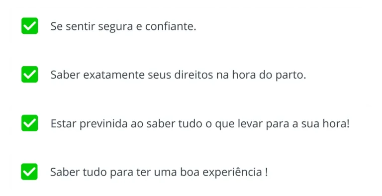 Então recapitulando tudo que você vai receber no Guia meu Parto Seguro: