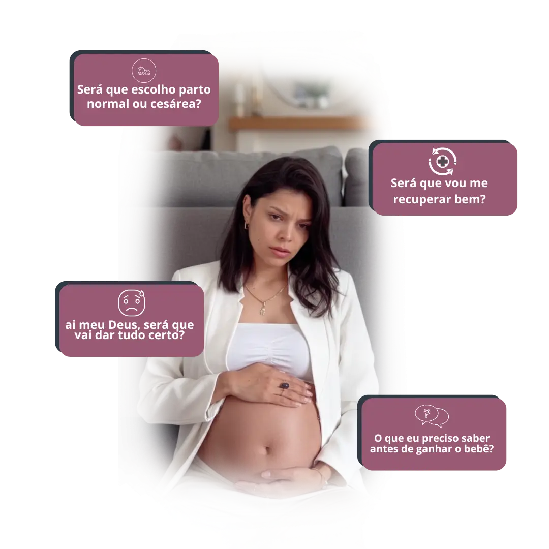 Para te mostrar, de forma simples e acolhedora, como se preparar para o parto, como agir em cada situação e como viver esse momento com tranquilidade — sem depender de achismos ou informações contraditórias.
